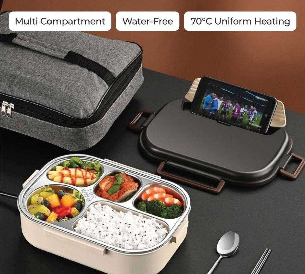 Enjoy hot, fresh meals anytime with the 4 Partition Electric Lunch Box, designed for convenience and healthy eating on the go. With its four separate compartments, you can keep different dishes neatly organized without mixing flavors.